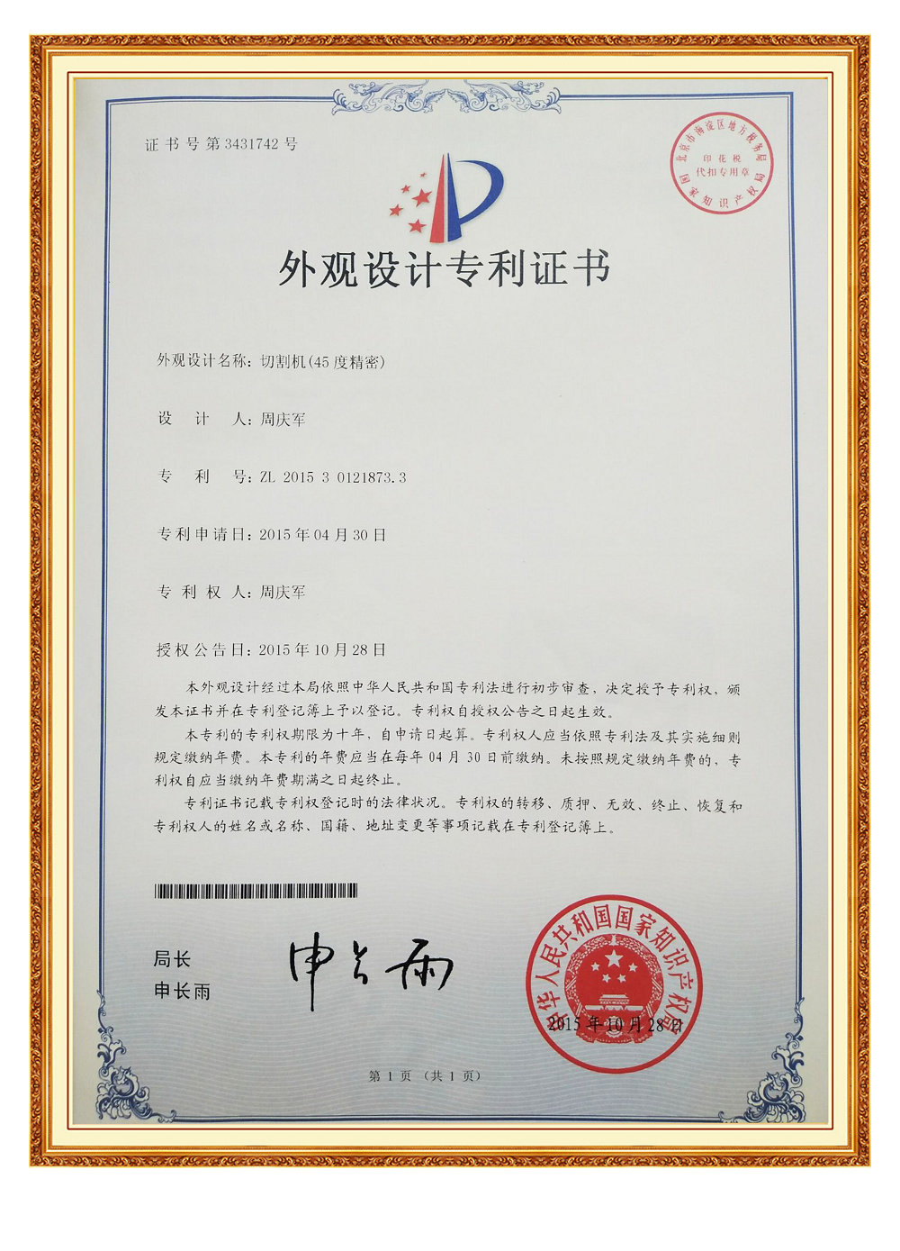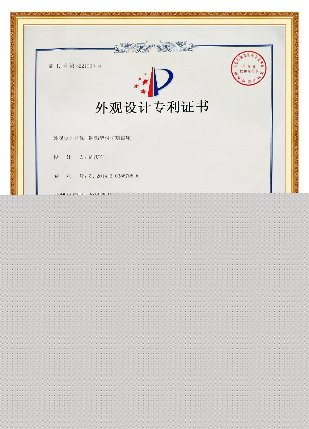• 公司多款設備擁有專利及實用新型專利證書,實用性有可觀的提高,新型產品解決了企業使用老式切割機鋸切材料效率低,安全性差,精度不達標等問題,有效為客戶提高了產能并節省了人工成本,取得了客戶一定程度的認可